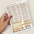 These sticker sheets were created specifically for all your travel and mailing projects. Essential basics include little travel icons perfect for travel journaling, ancient map strips and travel quotes and inspiration. Choose from four unique sheets available.