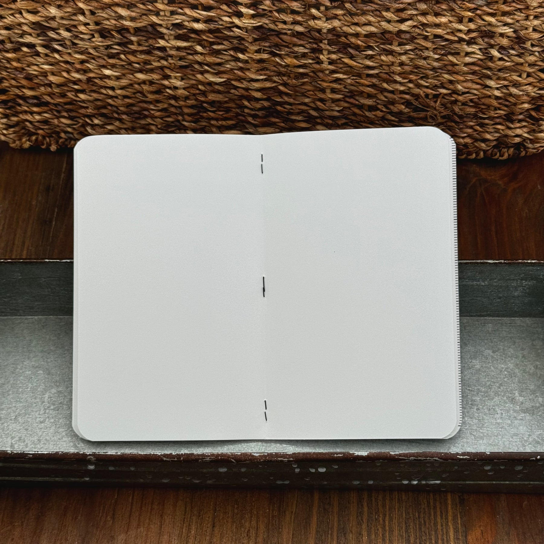 Bound inside by three black staples, you’ll find 48 plain pages of Mohawk Superfine “Ultra White” 70#T, a premium paper that’s ideal for sketching and artwork using a variety of media.