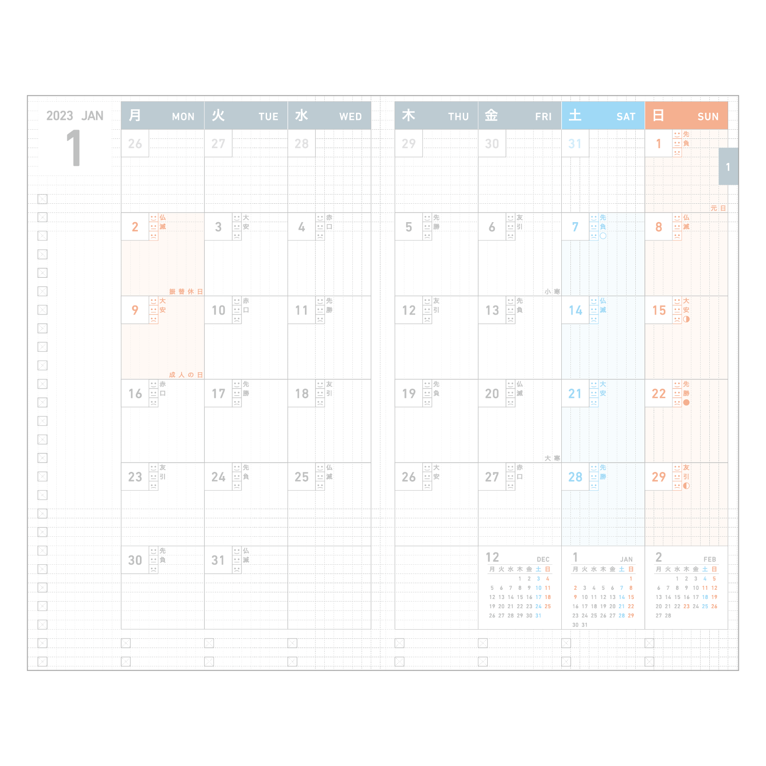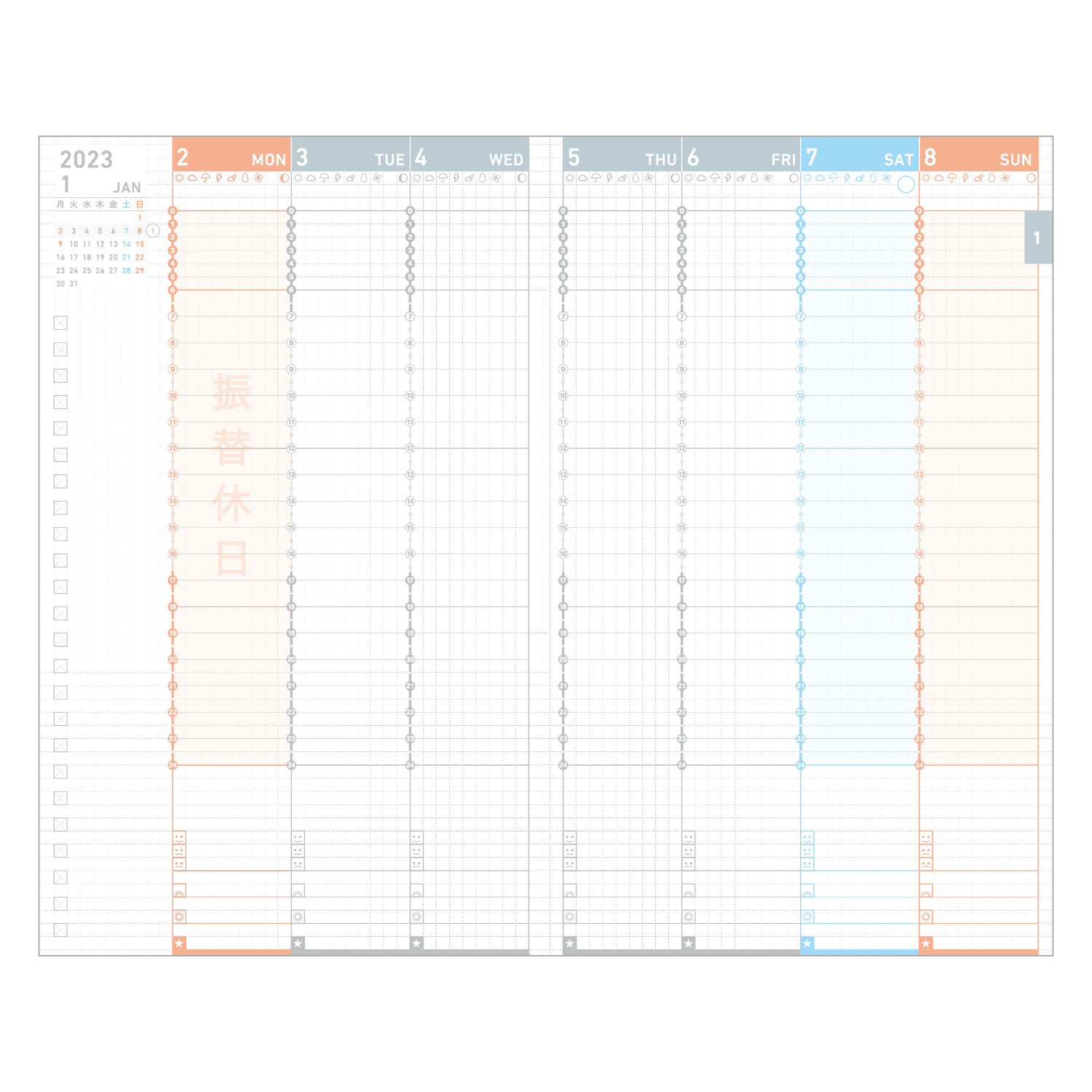 Features our exclusive THIN PAPER developed specifically for Jibun Techo - lightweight yet durable, resistant to warping even when erased with erasable pens.