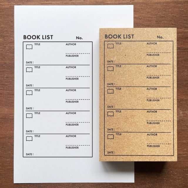 This is a book list stamp. Keep a list of books you're interested in or have read. Record the title, author, publisher, and date. Use the book icons however you like: color-code them by genre, write numbers, or color in books as you finish them.