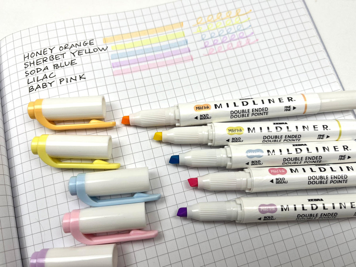 Zebra’s MILDLINER features a unique mild color that shows up softly on paper and a broad and fine point tip for all hand lettering and marking applications. Whether you are using the MILDLINER for your bullet journal, planner, hand lettering or studying for your next exam, it will help you express yourself in a unique way!