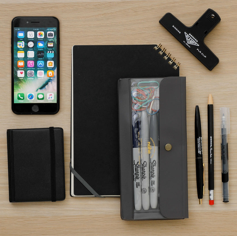 A gusseted general purpose case made of PVC with a transparent front by Hightide. Part of nähe collection.