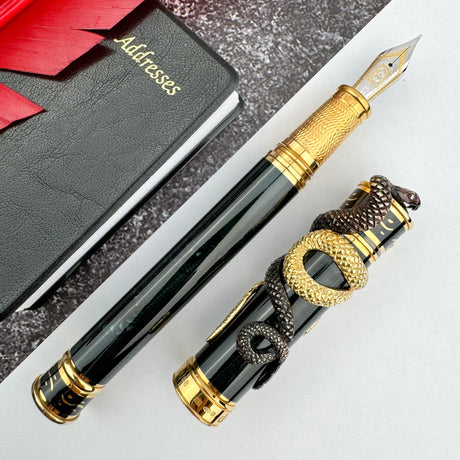David Oscarson Black Water Snake Fountain Pen - Light Green w/ Gold (Limited Edition #08/08)