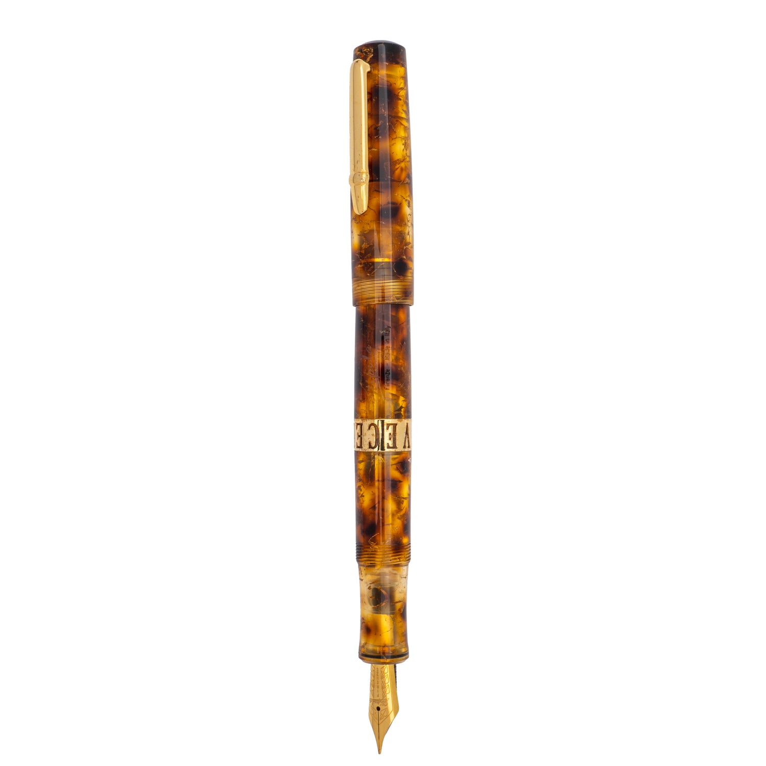 The Novecento Muzzle-Loading model boldly reimagines the 19th-century direct-fill safety pen for the modern writer. True to tradition, ink is filled via an included eyedropper through the front of the pen — hence the term muzzle-loading. Once filled, the nib extends forward by twisting the rear mechanism, and the cap screws on securely over the nib for clean and convenient everyday use.