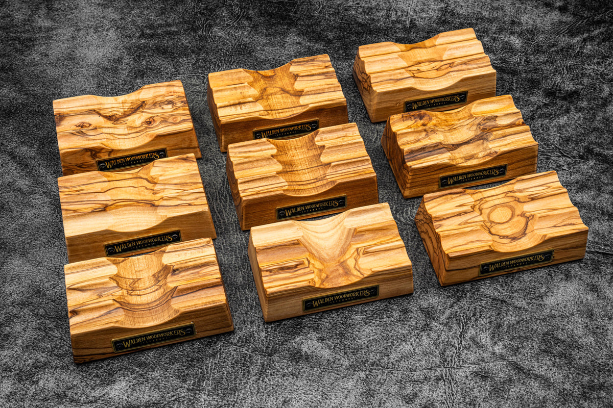 Spruce up your work desk with our handcrafted pen holder. It's stylish and professional and makes a perfect gift for the office worker or artist. 'The Pen Rest' is made from solid olive wood and comes with three pen slots. It holds most varieties of pens and brushes, including Fountain Pens and looks so stylish sitting on your work table.