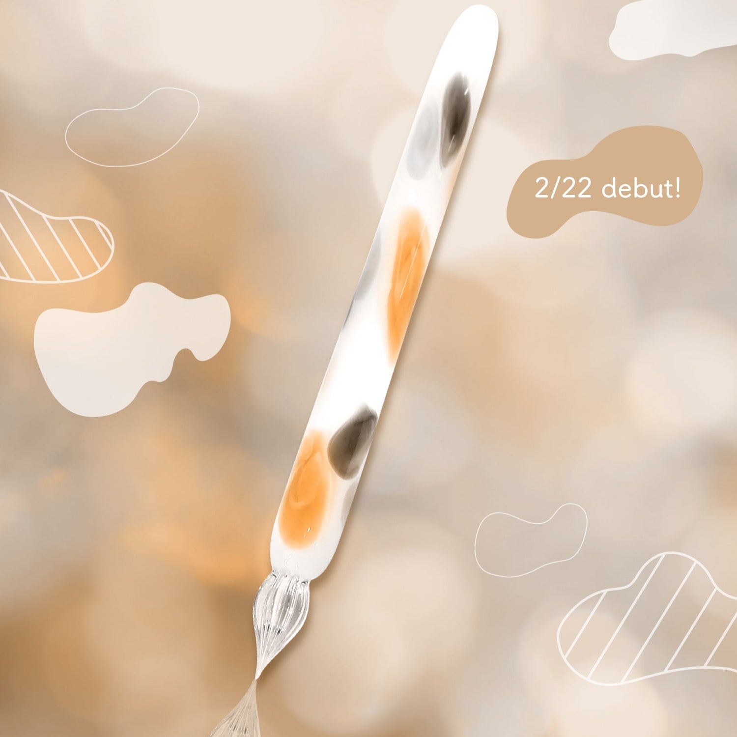 Calico cats are Japanese cats that have been loved in Japan for a long time. In order to express the charm of a calico cat through a glass pen, we aimed for a silhouette that is easy to hold, reminiscent of a tail.