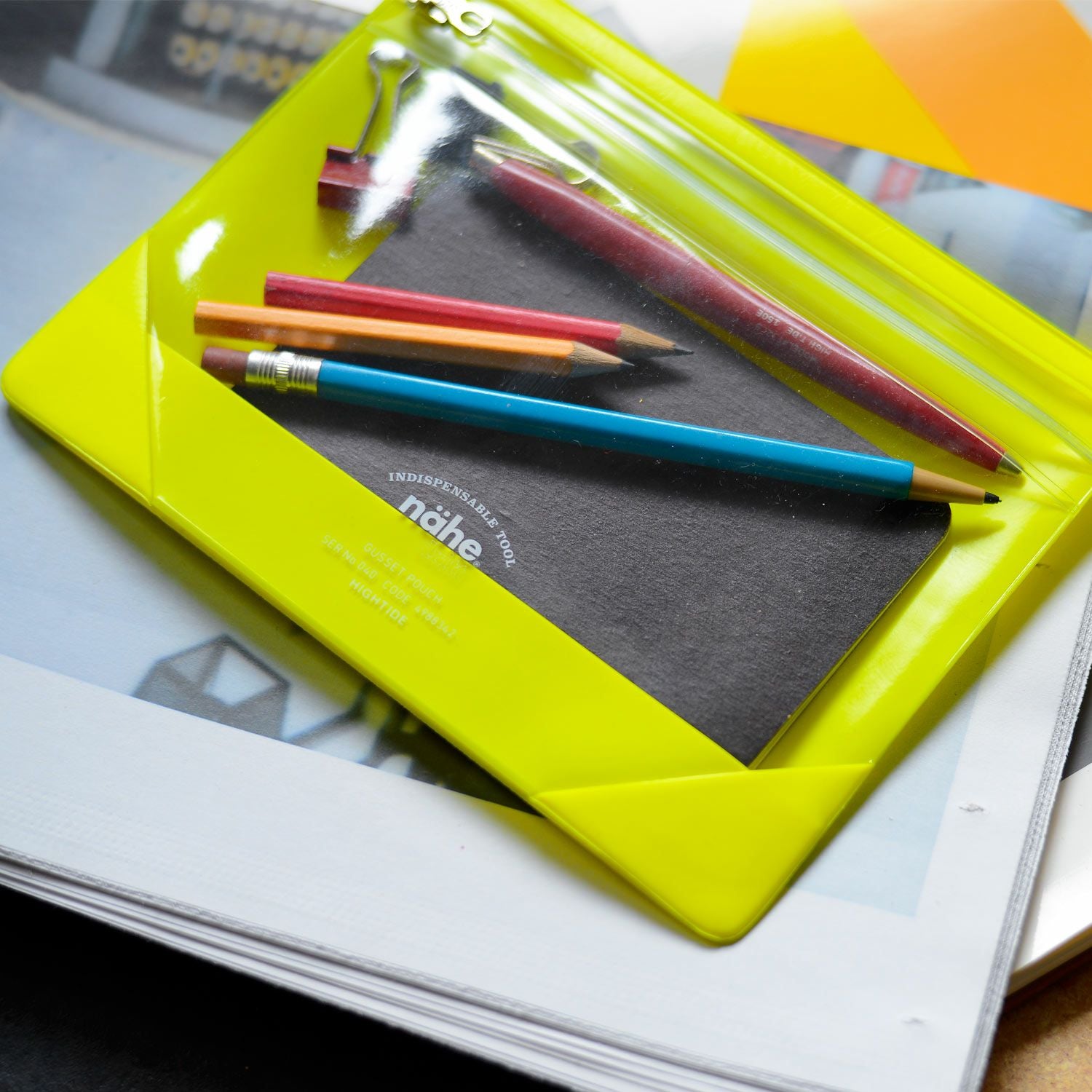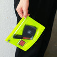 The eye-catching fluorescent color makes it easy to find even in a crowded bag, and the water-repellent PVC material will keep the contents dry in light rain (though it is not waterproof). This practical pouch is perfect for everyday use.