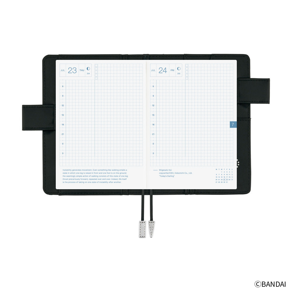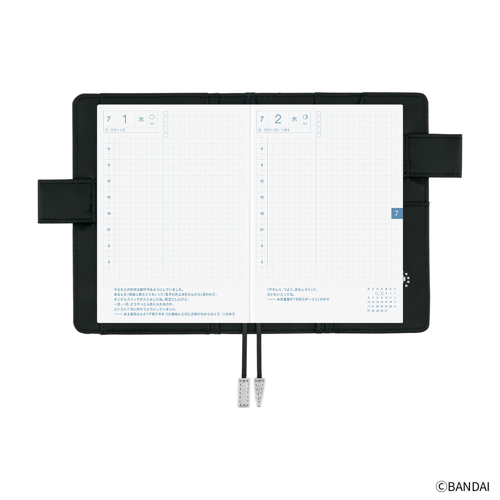 A cover born from a collaboration with the digital handheld pet, Tamagotchi. A whole group of Tamagotchi have assembled across the entire cover! There might be a Tamagotchi you raised a long time ago and have fond memories of, or you might discover a new one that was only recently released. As they all line up on the cover, it's clear that they get along—and that they’re having fun! It has "butterfly stopper" pen holders, which also function as a clasp to keep the cover shut.