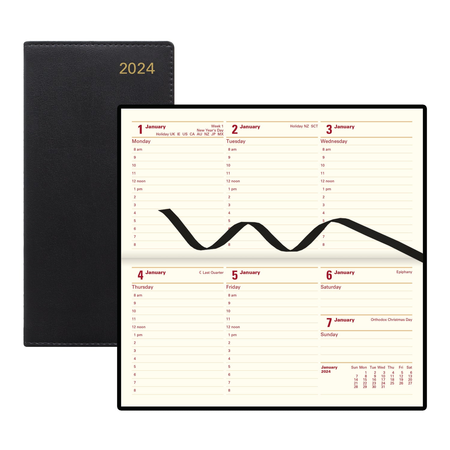 Letts Belgravia Slim Landscape Week to View Leather Diary with Appointments - 6 3/4" x 3 1/4" - 2026 / Black is backordered and will ship as soon as it is back in stock.