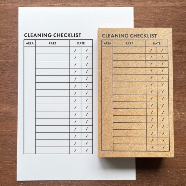 This stamp is a cleaning checklist stamp. It allows you to record cleaning areas, cleaning locations, and dates. Complete the checklist by writing down the cleaning areas and locations in advance, then write the date when you clean.