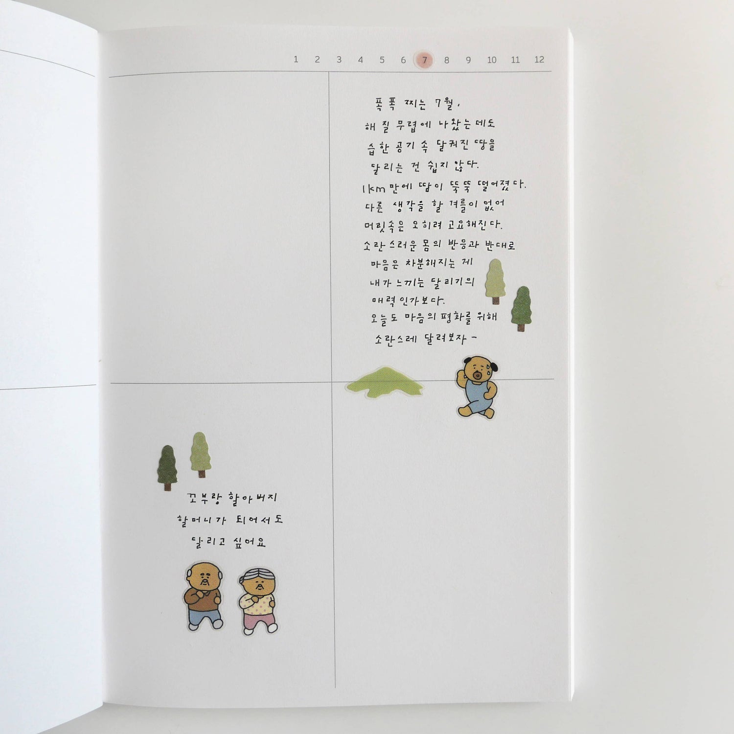 It’s a sticker featuring all the friends running in a cute hand-drawn style. Please enjoy using it in various ways when decorating your diary.