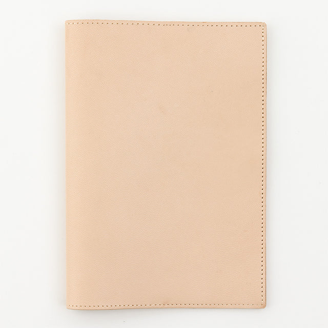 The leather is undyed for a simple look, and the unique character of each piece shines through on the inside of the cover.