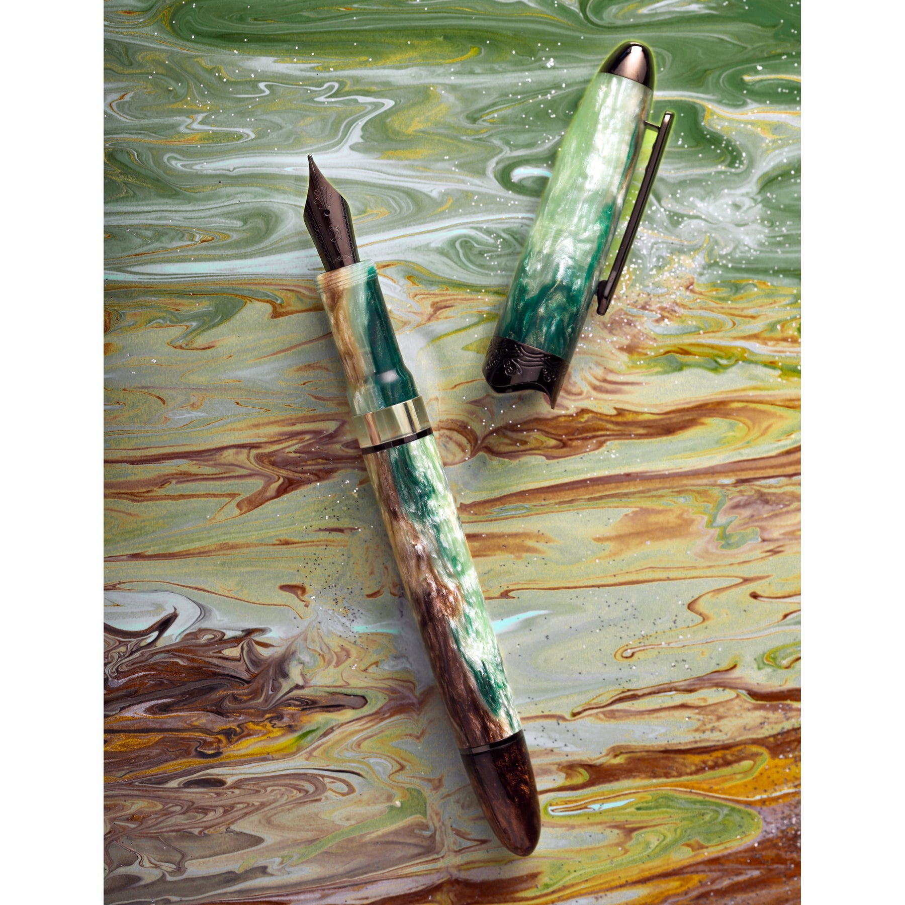 The Horizon collection draws inspiration from the view of the Horizon at different times of the day or under different natural phenomenon. Each pen is made from a uniquely hand-crafted piece of resin that beautifully fades between captivating colors that were meticulously picked. The Horizon collection brings a creative modern twist to the classic cigar shape. With its curved metal ring, representing the waves of the ocean, and Nahvalur’s signature ink window, representing the sky behind the waves, the collection strives for the perfect balance between modern creativity and cherished classic. A Twist of Classic