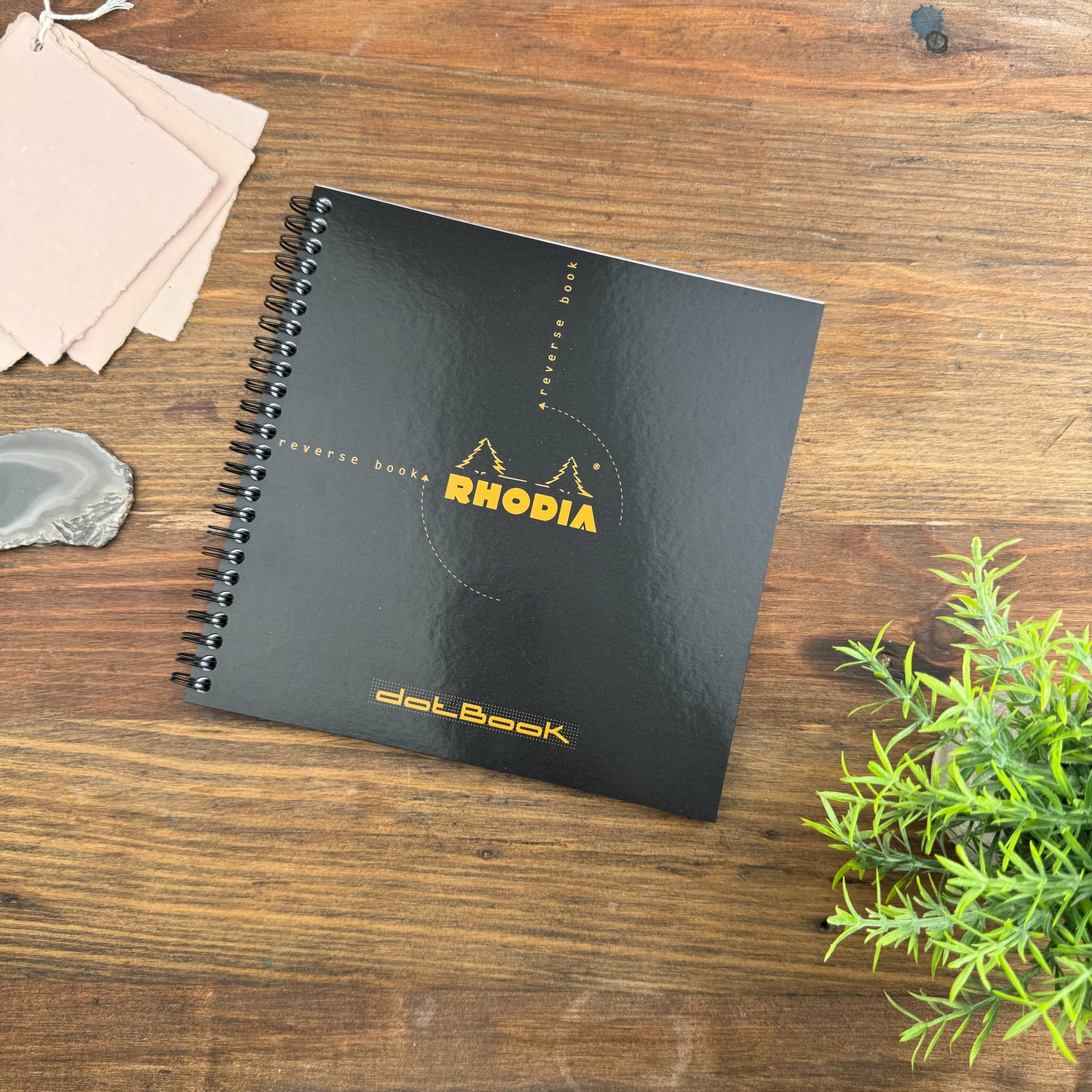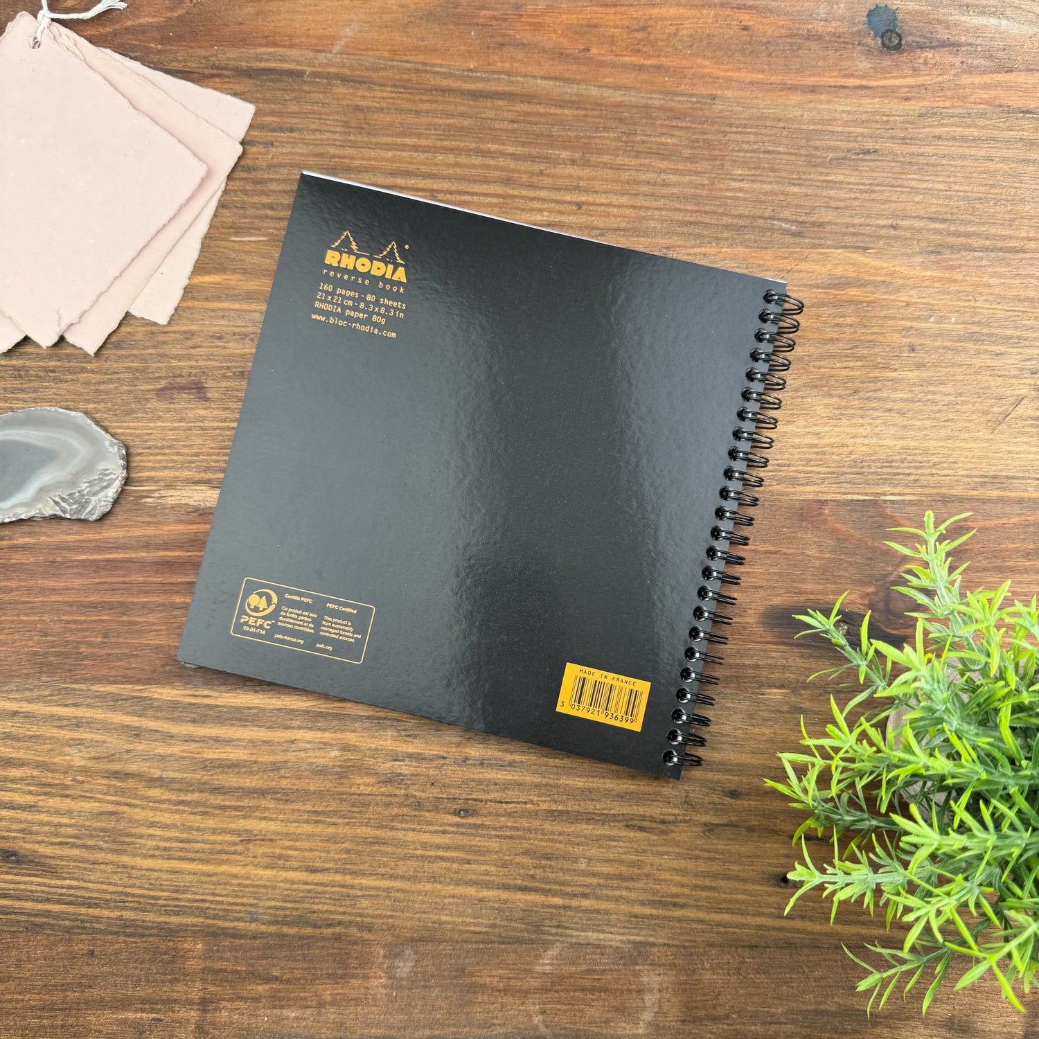 Rhodia Reverse Book - Dot 80 sheets - 8 1/4 x 8 1/4 - Black cover is backordered and will ship as soon as it is back in stock.