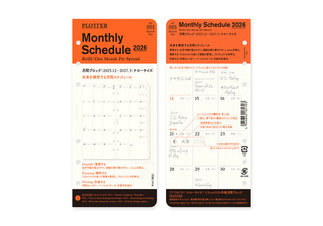 Plotter Monthly Schedule Refill 2026 - Narrow Size