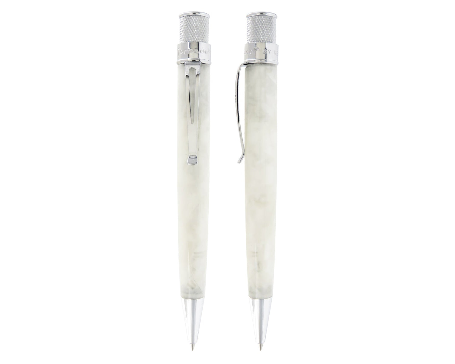 Elegant and ethereal, the Opal White Acrylic Tornado Rollerball is a rare find from the Vault. After many years, this pearlescent acrylic was rediscovered at the factory, and now revived with polished chrome accents, creating a timeless look that’s both refined and versatile. This beauty is ready to write its next chapter in your collection.
