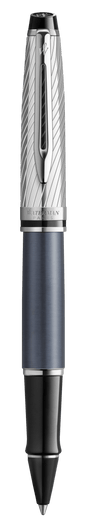 The Expert Deluxe Stone Grey Rollerball barrel’s tapered silhouette and cap’s laser-engraved, contoured stripe pattern allow individuals to showcase their superior taste. The metallic, Stone Grey lacquer barrel, signature Waterman double-branched clip and beveled cap combine seamlessly to deliver fine writing experience.