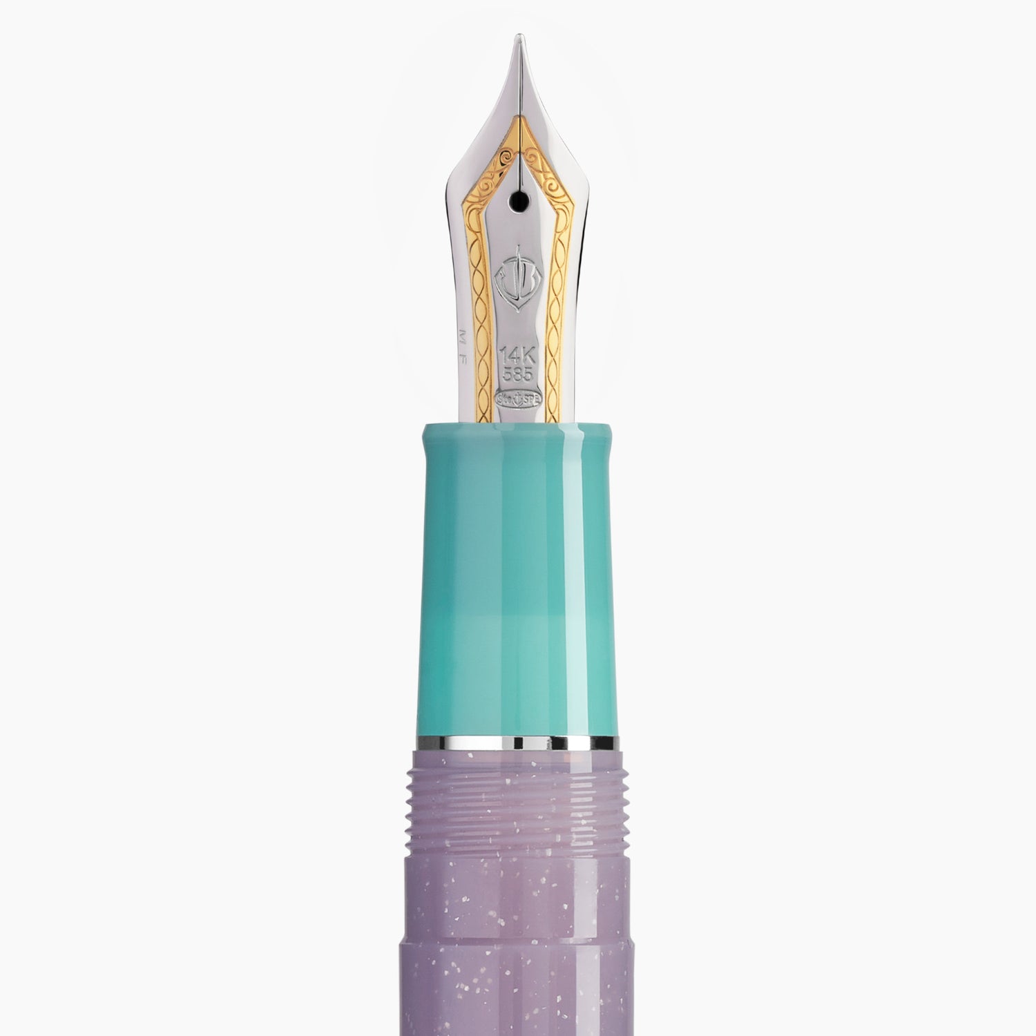 Join Sailor on an exciting quest to uncover the hidden secrets of the sirens with this North American exclusive. Professional Gear Follow the Mermaid shows off a mystical combination of color with a sparkling lilac body, an icy Pacific blue-green cap and section, and white finials. The silver clip, accents, and the bi-color gold nib bring it all together with a glimmer like scales flashing in the sunlight. Embark on an adventure today, with your very own Professional Gear Follow the Mermaid by Sailor to discover what treasures it contains.