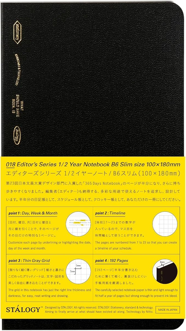 Slim size fits in your hand and fits in your pocket. With narrower width, it easily fits in any pocket. The Slim ½ Year Notebooks are designed to be easy to carry while maintaining the good qualities of the original ½ Year Notebook.