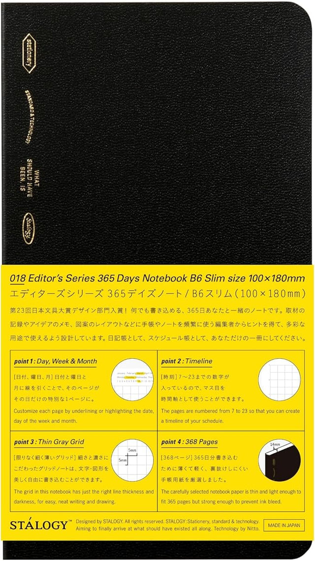 The minimal details of the Stalogy yearly planner notebook make it ideal to use as a journal, day planner or sketchbook. The high-quality graph paper means that the journal is fountain pen friendly, while the super thin pages keep the notebook light-weight.