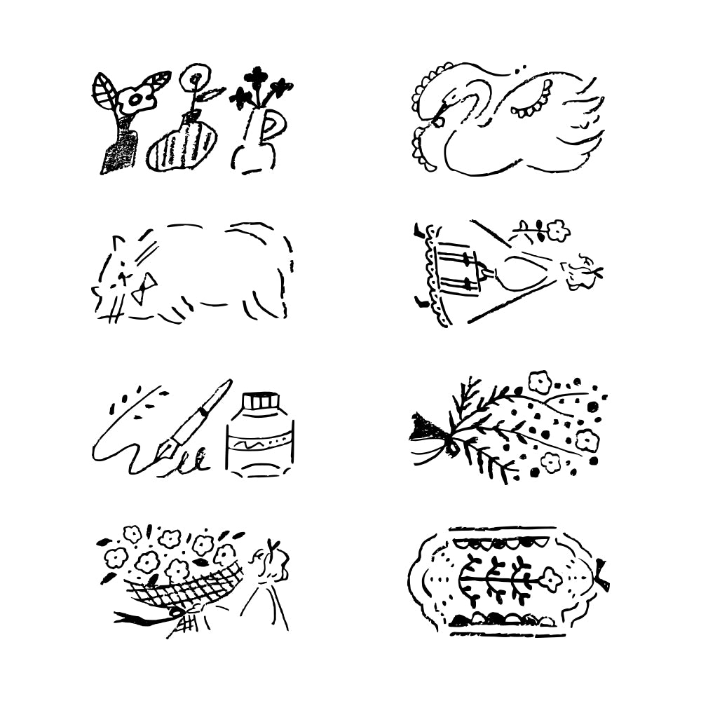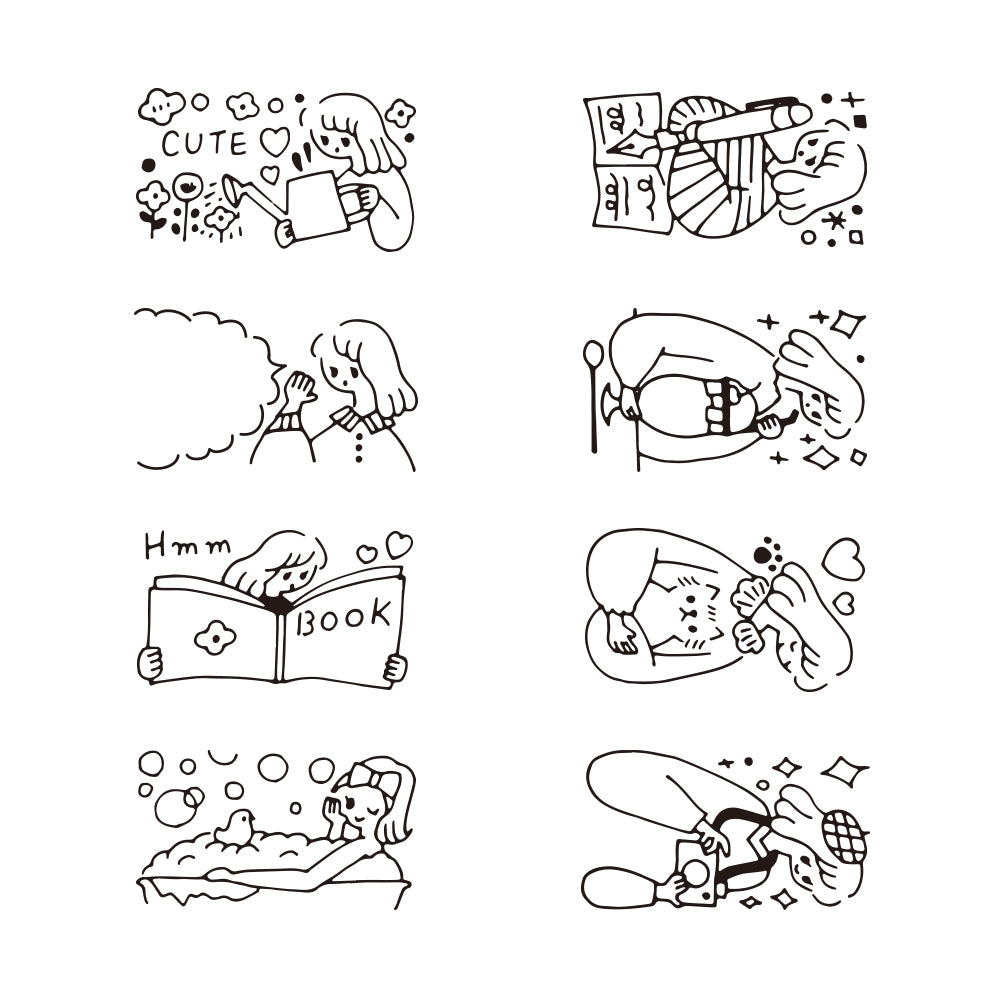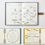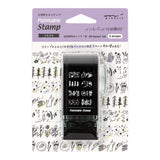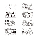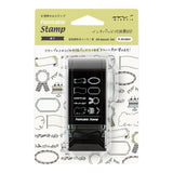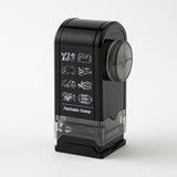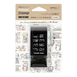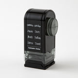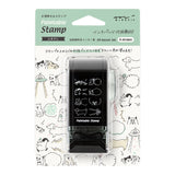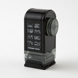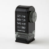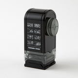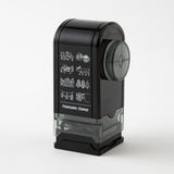 This dial rotating stamp is designed to enjoy recording notebooks and diaries. The ink pad is included, so there is no need for a stamp pad and no need to worry about getting your hands dirty. With this one unit, you can stamp 8 delicate patterns beautifully. Since the ink is oil-based pigment, it will not bleed even if a water-based marker is used to color over the stamped pattern. The ink can be used for approximately 1,000 stamping cycles, but when the ink becomes too thin, please refill it with 35384006 Refill ink Black, sold separately. The design features animals snuggled up to title letters that are easy to use for a variety of records.
