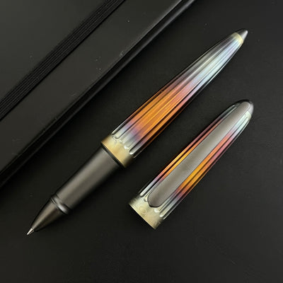 Smooth lines and a streamlined body. Feel the legacy of the Zeppelin and give height to your narratives. Featuring full aluminum casing, anodized surfaces, and grooves on the barrel and cap. The exclusive closing system has a soft sliding click and is the perfect luxury gift for treating yourself or a loved one.