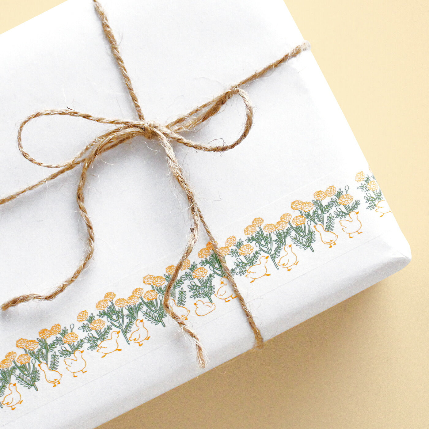 This gorgeous masking tape features endless flower fields. Its wide design makes it perfect for decorating planners and notebooks, wrapping paper, and more. This is a series in which tiny animals explore flower fields.