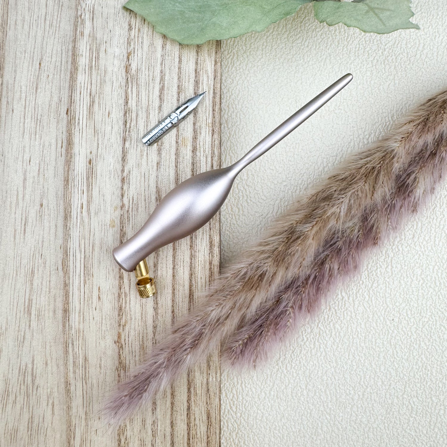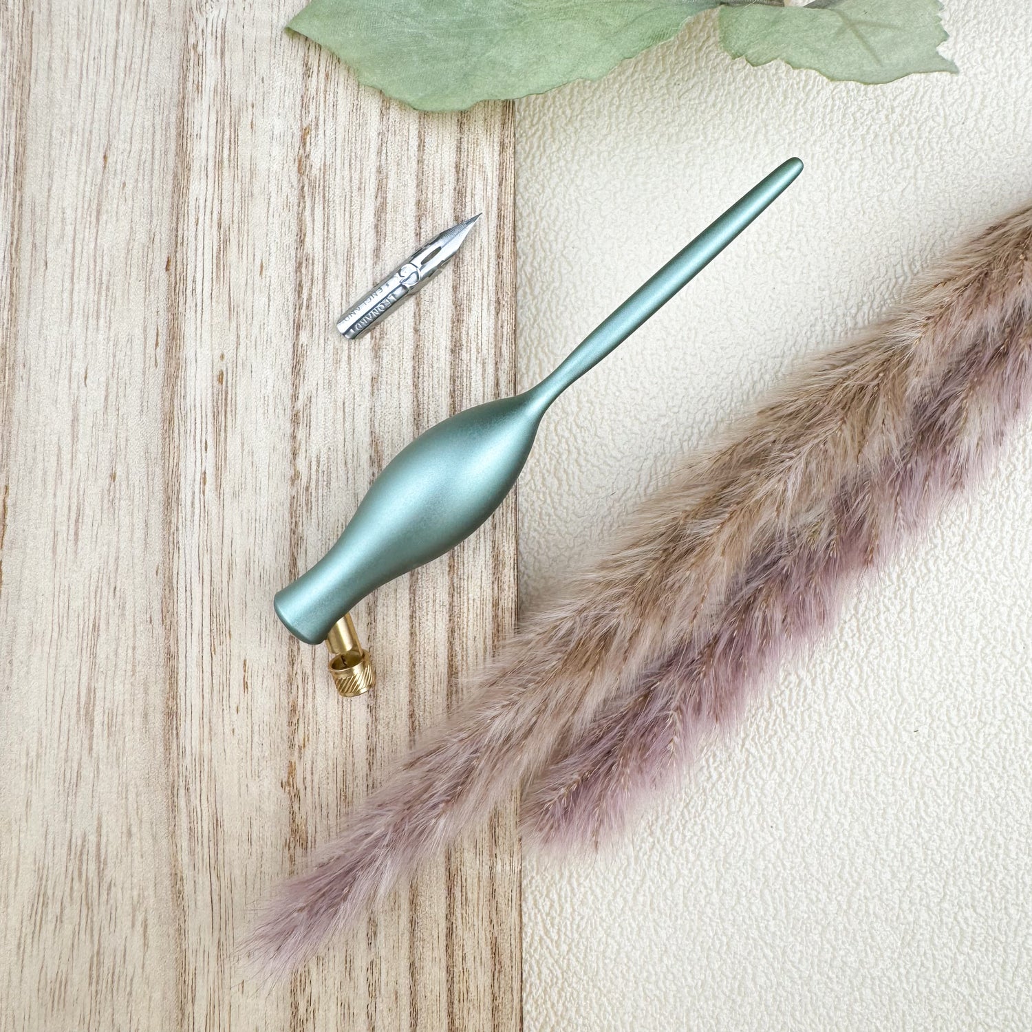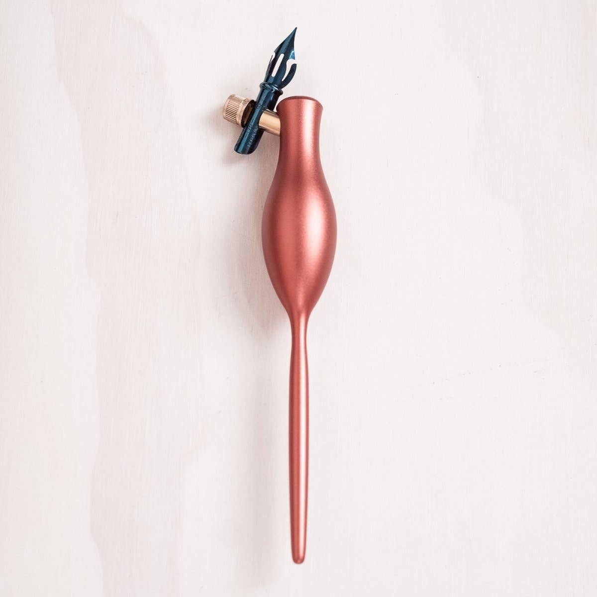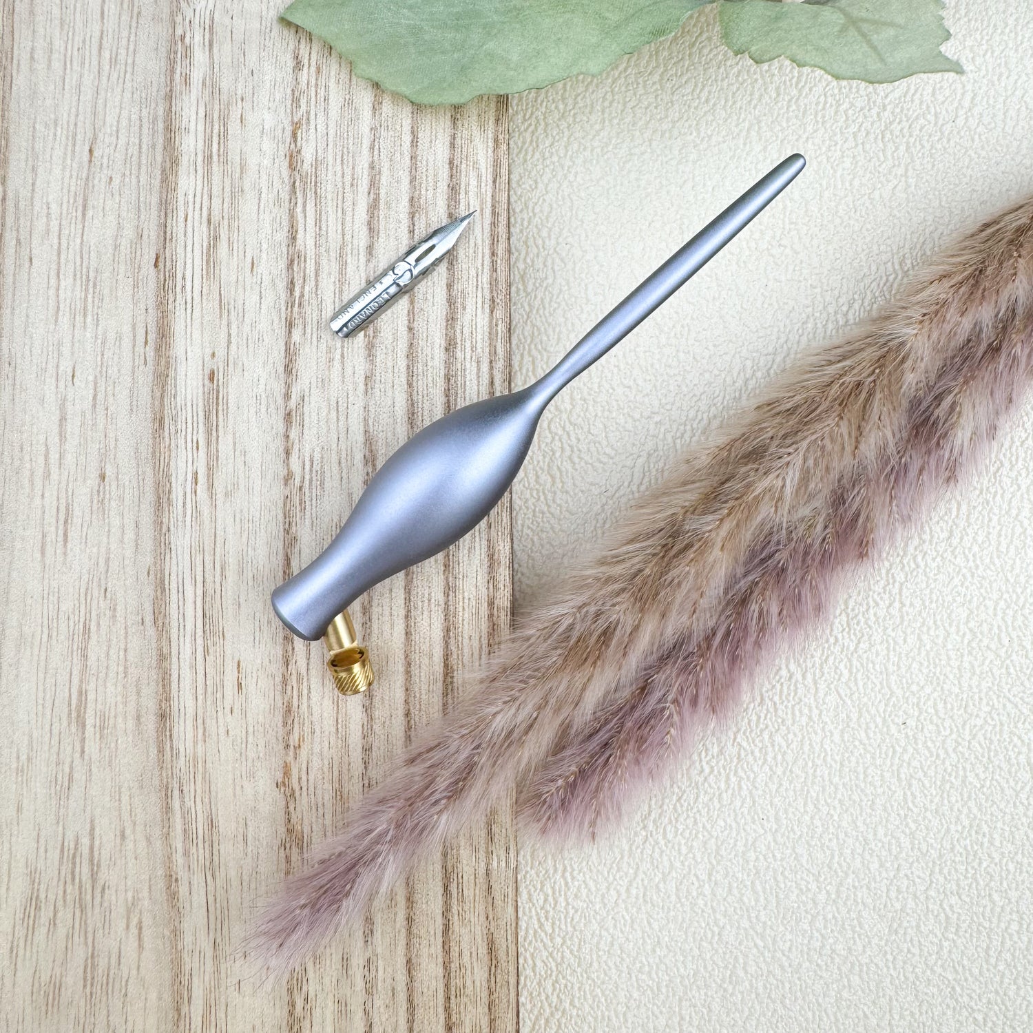 A unique calligraphy pen designed for those who like a compact pen holder and a lovely curved body for improved grip and stability. Added weight and a unique body shape helps calligraphers to avoid the dreaded 'calligrapher claw' and improve their technique in the long run.