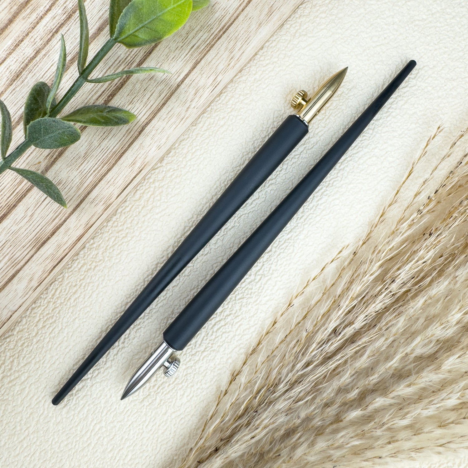 Good to Know: - Nib is only compatible with straight calligraphy pens with a standard sizes nib ferrule. - Nib holds an ink reservoir inside the cavity, which allows you to doodle an entire side of A5 paper with one dip. - Brass offers smoother writing and varied line widths, while stainless steel is precise and durable. - Use any ink! Waterproof pigment, shimmer, iridescent, watercolours, acrylic, Indian... The list goes on.
