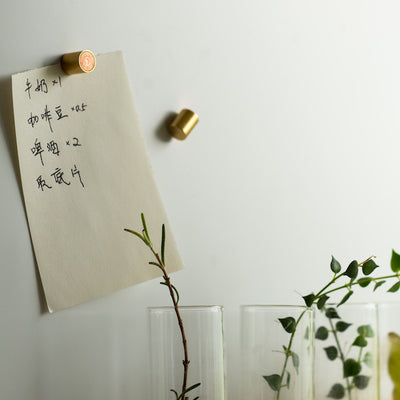 Magnets are made of brass and copper material. Equipped with powerful magnet inside. You can fix any papers or notes on your fridge or steel cabinet.