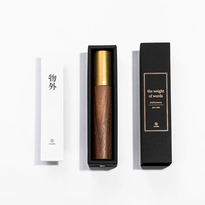 The pen case is a hollow round container pieced together by brass and wenge wood. Revolve to open the upper cover. Bronze and wenge wood are both light, fresh and pure in the beginning, but will be darker with more writing, fused into the writings of the user and past memories. The most qualified materials are selected, expected to be a lifetime stationary.