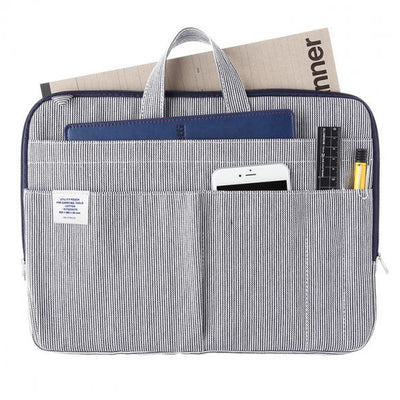Durable, slim-profile 10 pocket case with protective cushioning for electronics and short handles (may be folded away). Use inside a larger bag or on its own (with or without strap - sold separately). Sized to hold up to 13" PC or MacBook Pro.