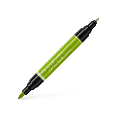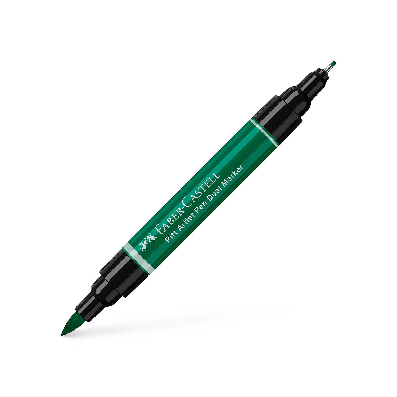 The Pitt Artist Pen Dual Marker features a smooth, flexible brush nib that retains its shape for artistic work and a metal-encased 0.8mm fiber-tip for adding detail. The thick brush nib is suitable for fine to thick lines and allows for vast coverage, while the fiber-tip is ideal for fine drawing, contours, lettering and accents.
