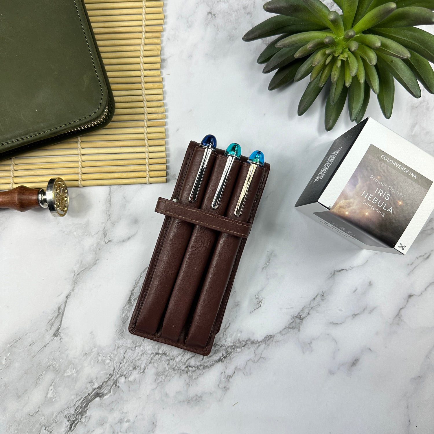 Experience the epitome of pen protection with the Girologio 3 Pen Case – meticulously crafted to cradle 3 pens in unparalleled elegance. The thoughtful design includes a convenient flap-and-loop closure mechanism, ensuring your pen stays securely in place. This case, constructed from durable leather, is tailored to accommodate longer and wider pens with utmost security.
