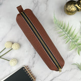Experience elegance with our Leather Zipper Pouch– meticulously crafted in the USA from full-grain Italian leather to offer unparalleled protection and style. The thoughtful design includes a sturdy brass YKK Zipper closure and a soft interior, ensuring your belongings stay securely in place and are cushioned with care. This case is perfect for both on-the-go use and daily endeavors.