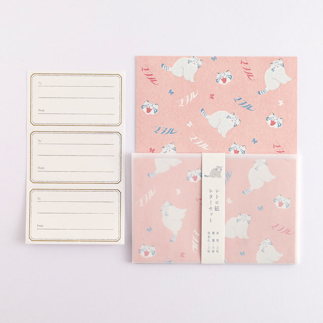 This is a cute series with a retro design that combines patterns reminiscent of the wrapping paper of old department stores with logo designs. This letter set uses retro paper with a warm feel for the letter paper, and the pattern can be seen through the tracing paper envelope.