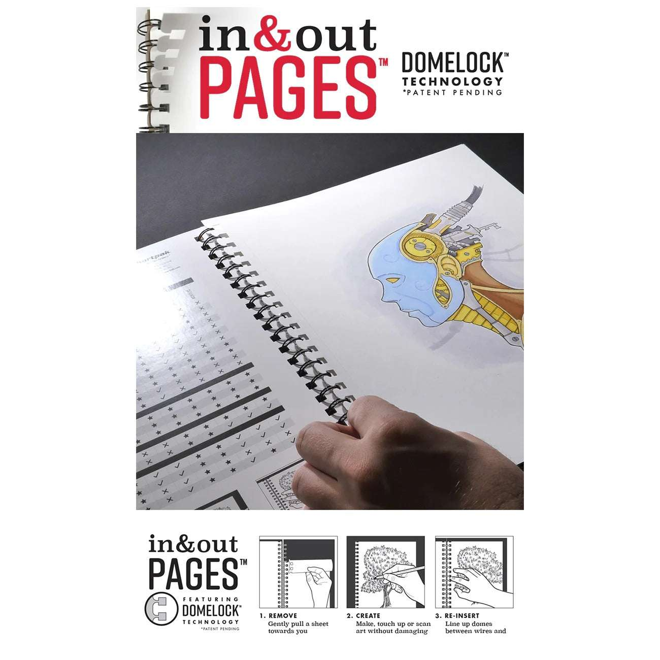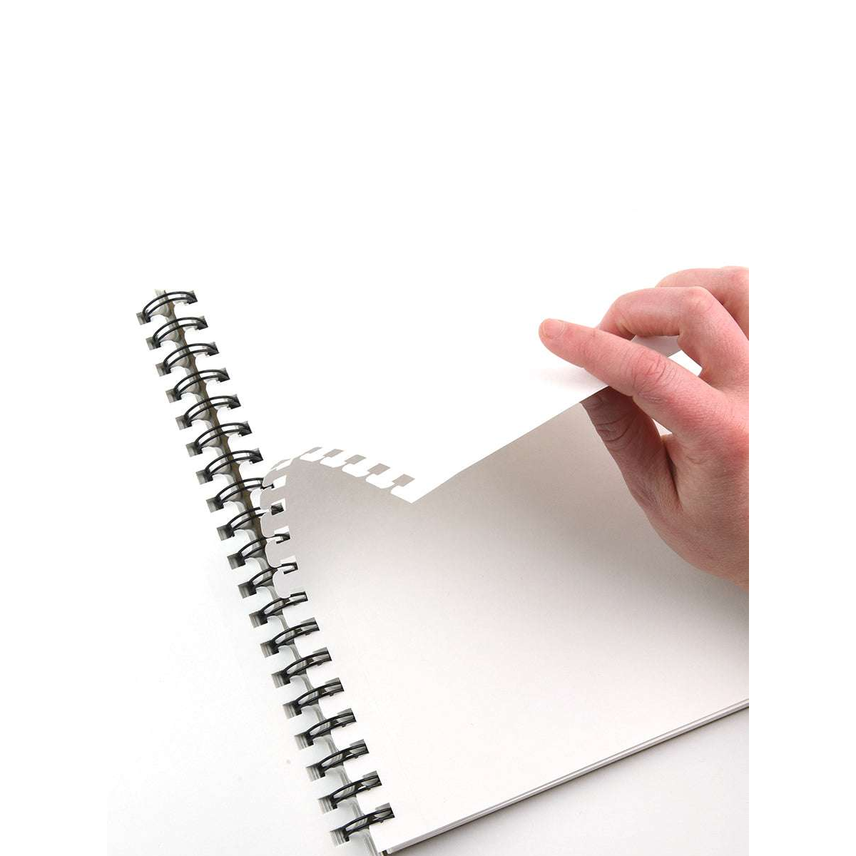 160 GSM, white medium weight drawing paper with a medium tooth texture perfect for dry media and light washes of wet media. Mix media wire pads are dual loop wire bound construction and feature “In & Out” pages (patent pending) that allow you to remove sheets from the pad for painting, reworking, scanning, and more. Upon completion, simply return the sheets into the pad.