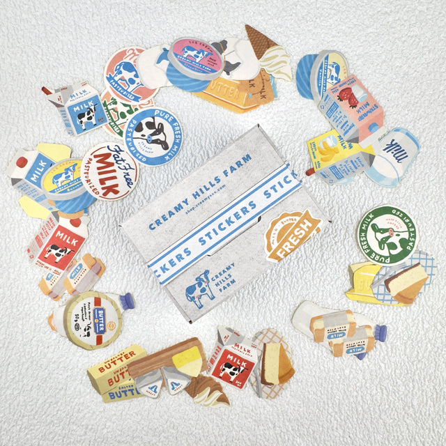 There are approximately 40 cute hologram stickers inside the miniature cute cardboard Farm Package