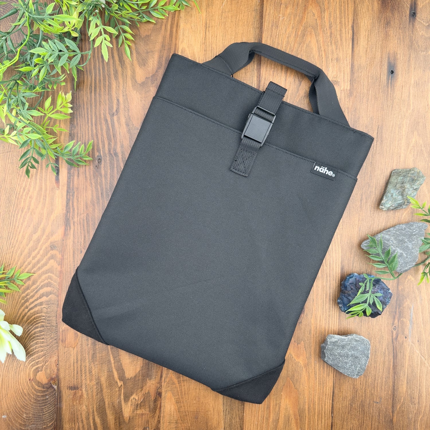 Tablet sleeve case with handle, also nice for bag-in-bag. Cushioned and comes with buckled pocket.