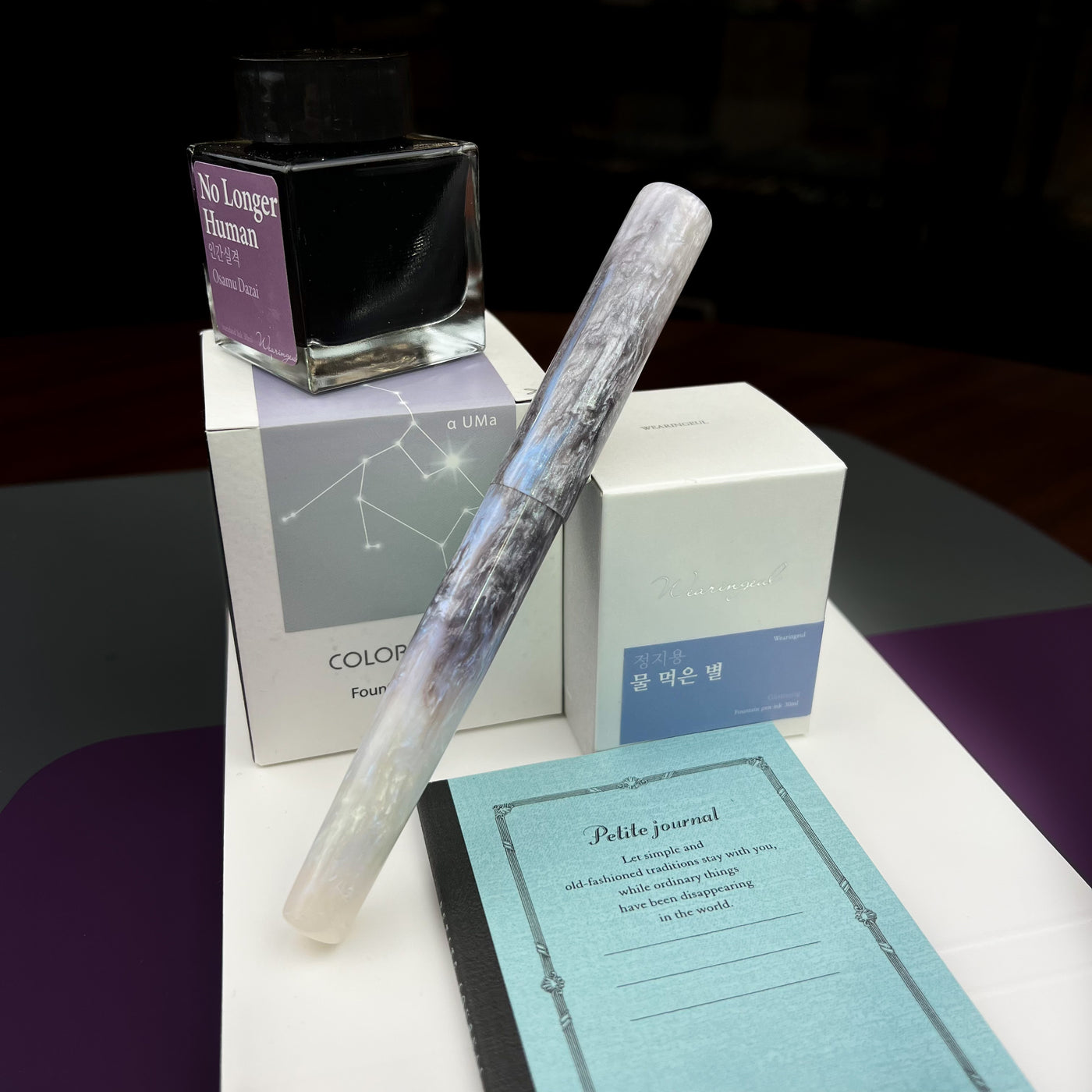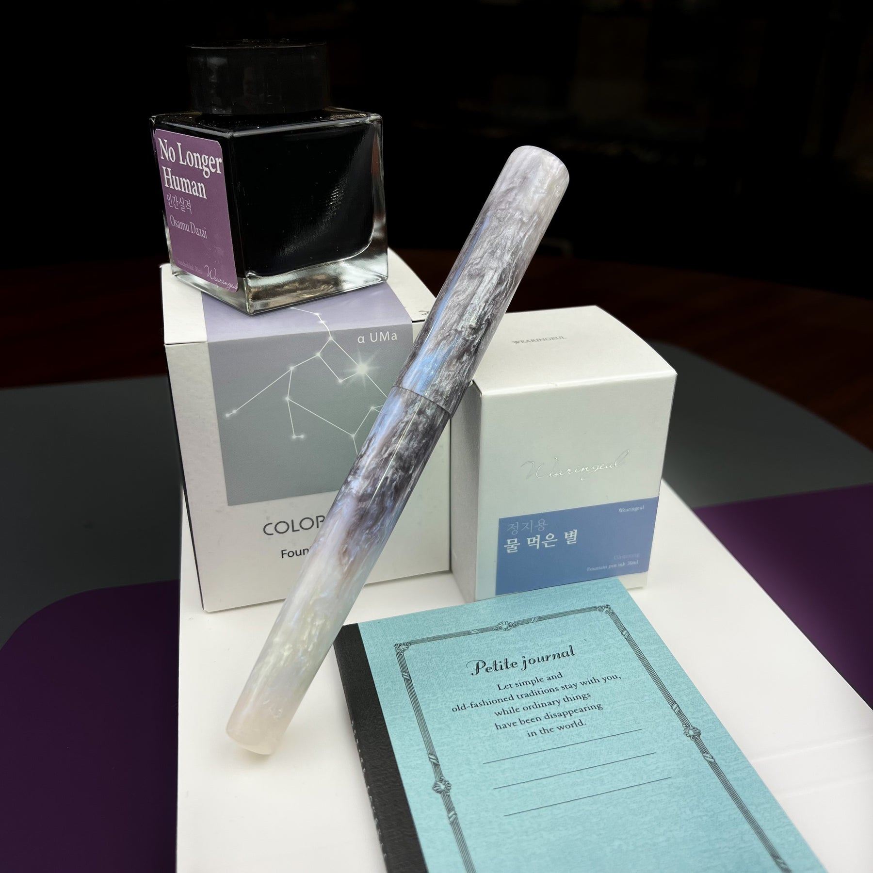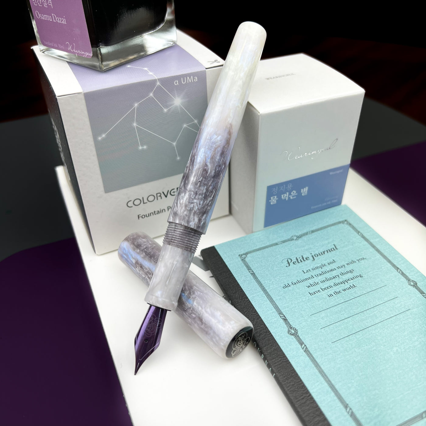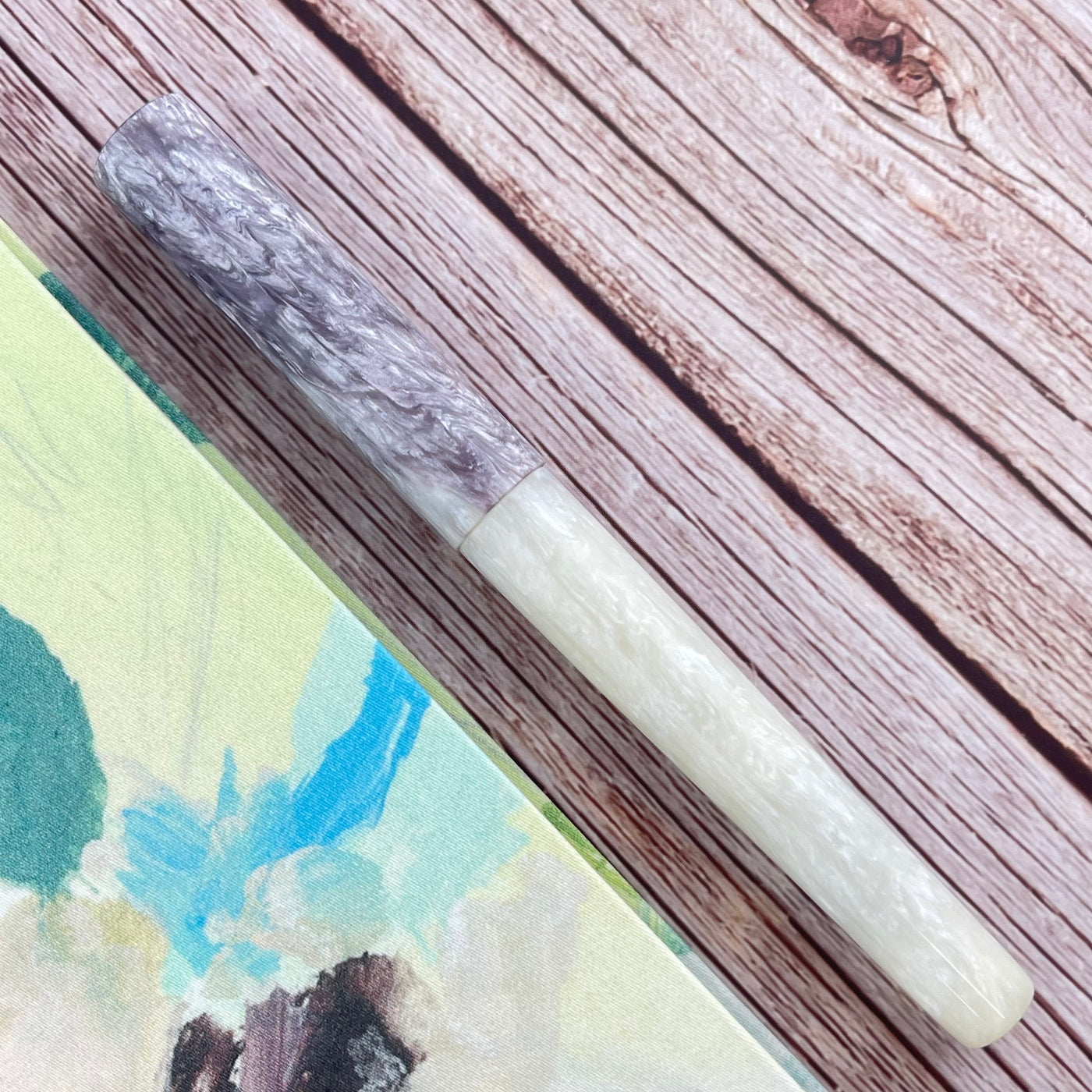 The Magical Mermaid uses what's called interference colors, you can see hints of blue, red, green, and of course purple in the white sparkly diamond. Moving up the body of the pen towards the cap, you see purple magically appear out of that ocean of white, ending with an almost completely purple cap. In the sunlight, the pen glows, much like mother of pearl or abalone shell. Purple has always been associated with magic and sorcery; we feel the pen is aptly named. Of course, the violet nib completes the overall look of the pen. Uncapping it and revealing that beautiful JOWO nib is the true magic and the “WOW” factor for which Hinze is known.
