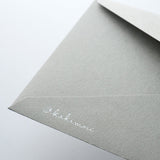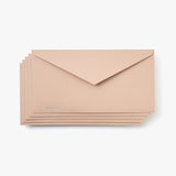 A set of five envelopes in assorted colours and papers. Find the perfect envelope for the recipient and occasion. The foil-stamped logo adds a touch of elegance.