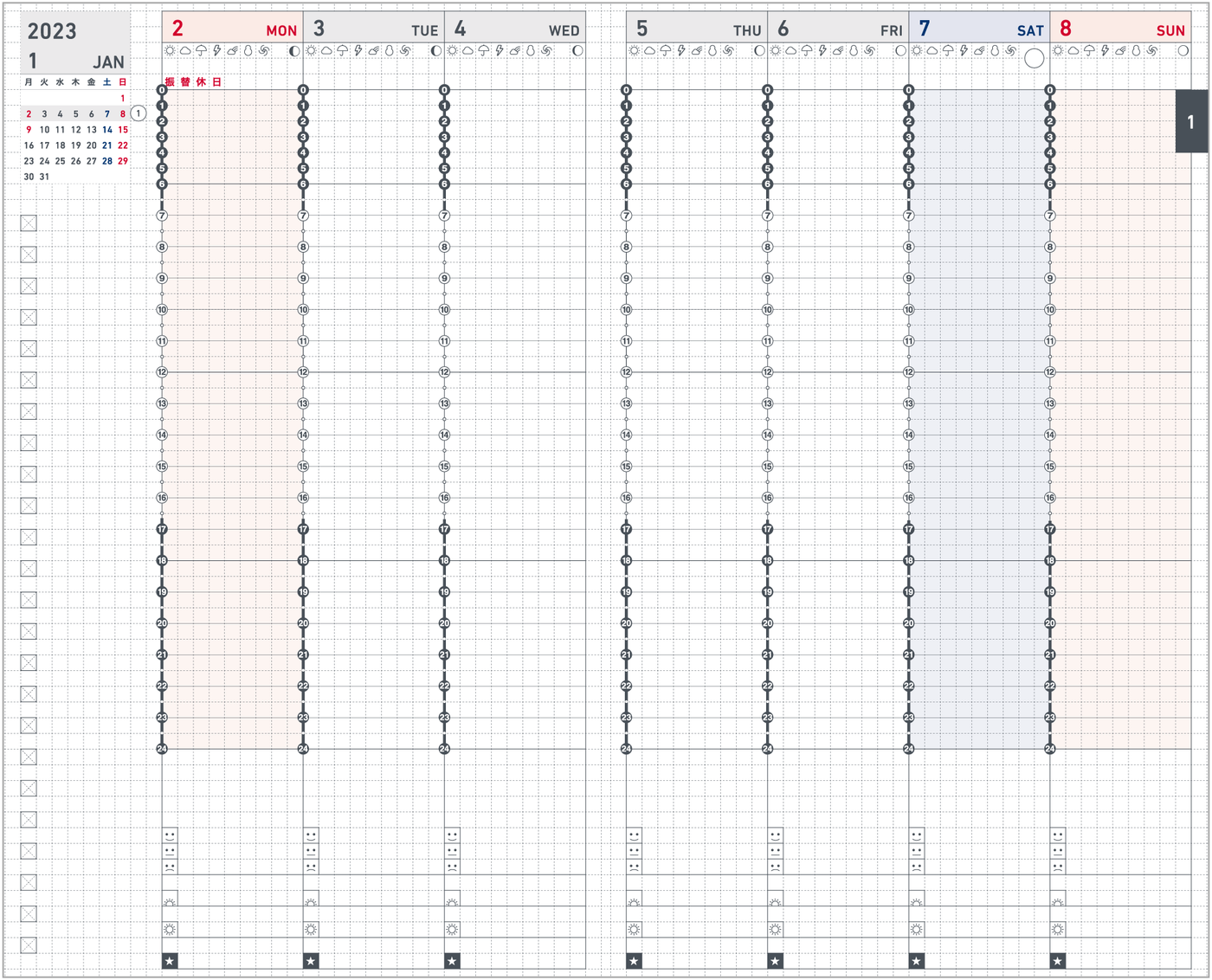The only planner in the Jibun Techo planner lineup to feature MIO PAPER - our original smooth-writing paper with quick-drying, smudge-resistant ink properties.