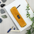 Organic cotton canvas pouch for creative tools. Weatherproof wax coating: durable and stain-resistant. Two-way, solid brass zipper with nickel matte finish. Store pens, pencils, brushes, and erasers for easy carry.