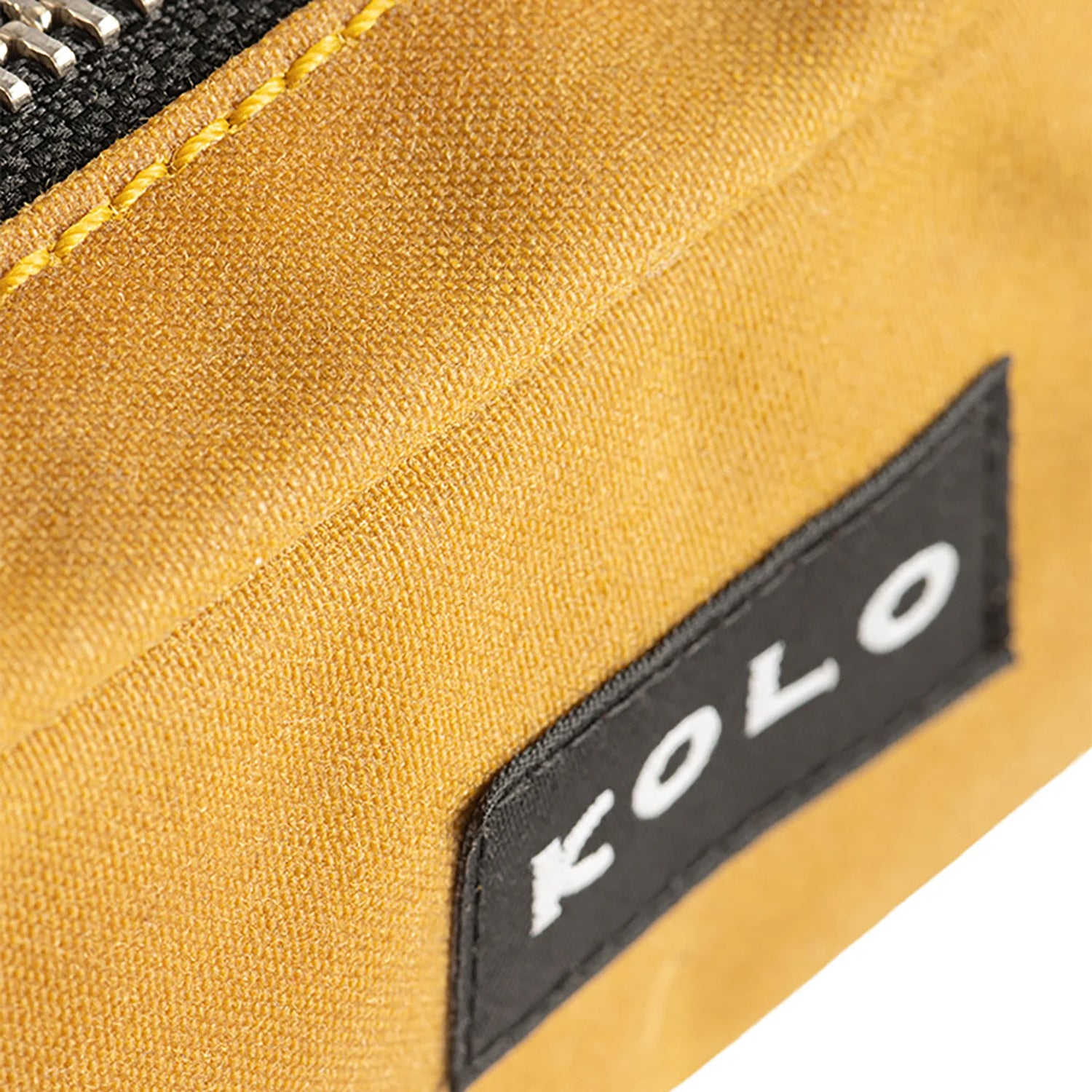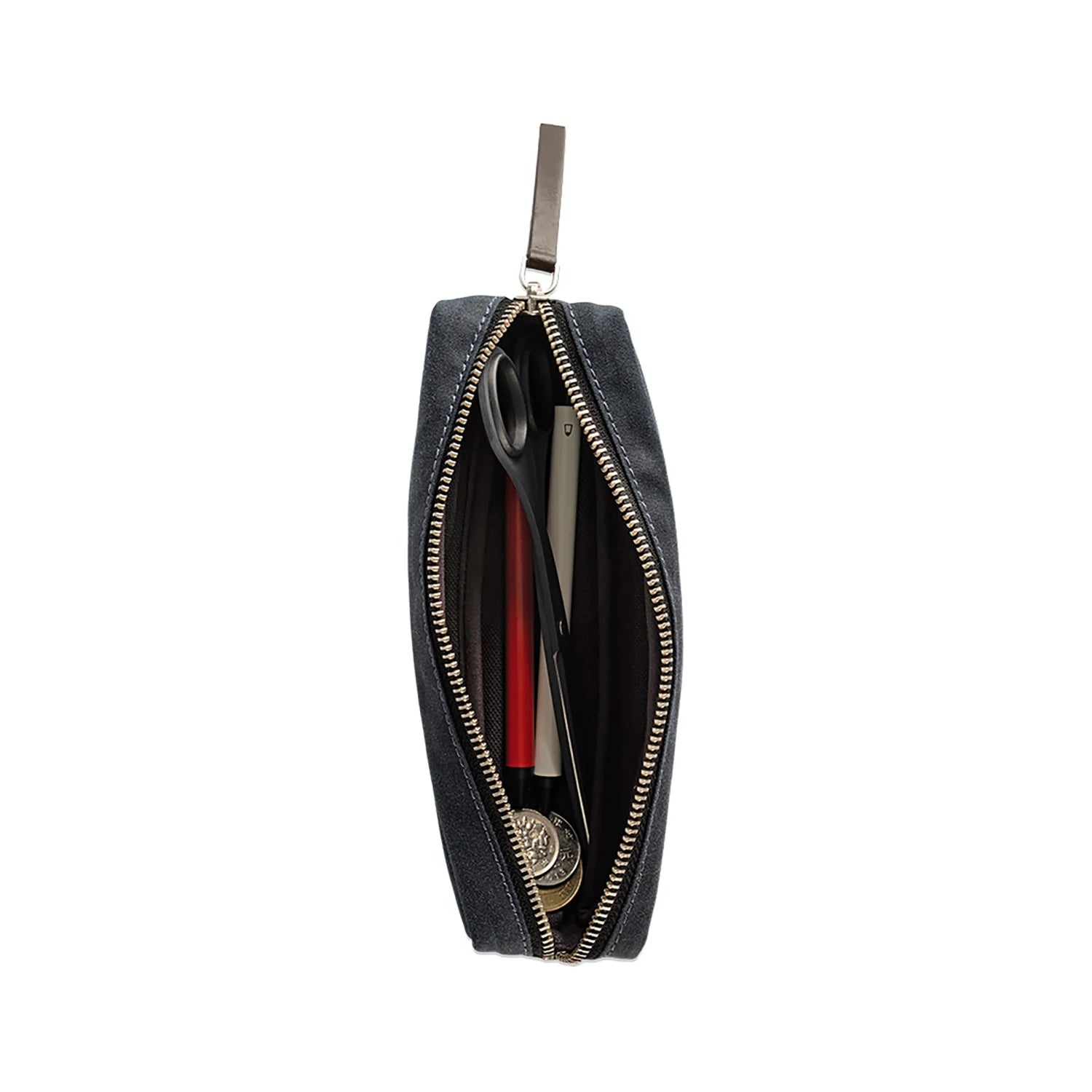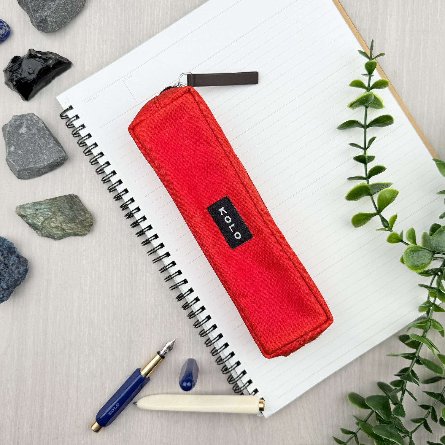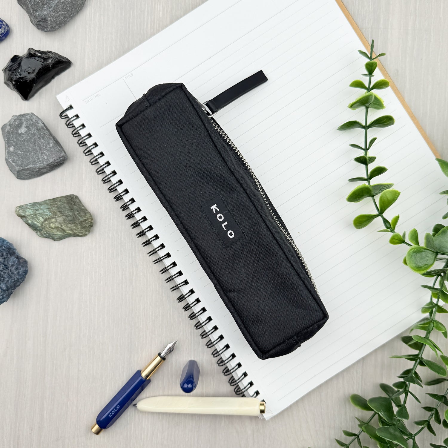 Organic cotton canvas pouch for creative tools. Weatherproof wax coating: durable and stain-resistant. Two-way, solid brass zipper with nickel matte finish. Store pens, pencils, brushes, and erasers for easy carry.
