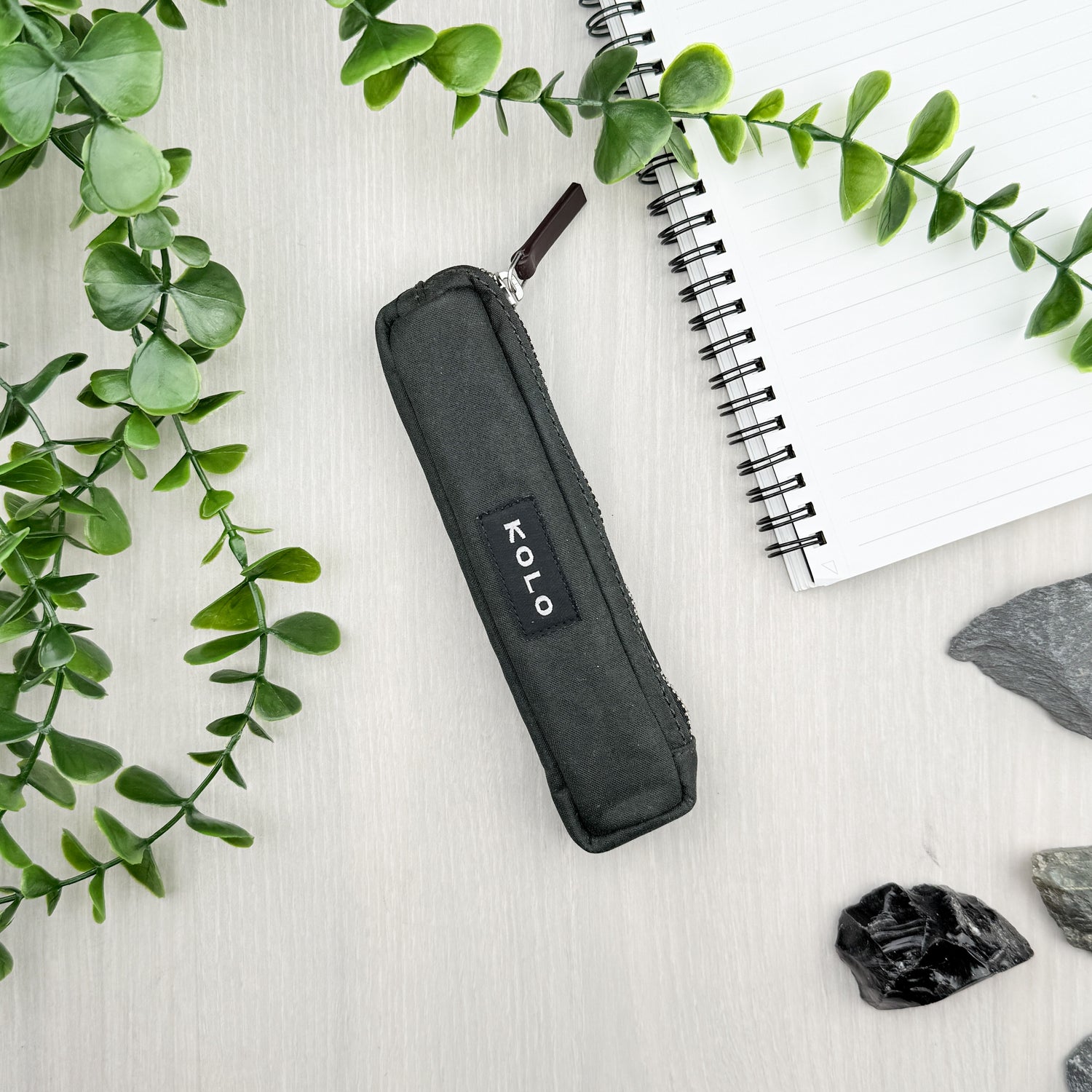 Two-way, solid brass zipper with nickel matte finish. Store pens, pencils, brushes, and erasers for easy carry.