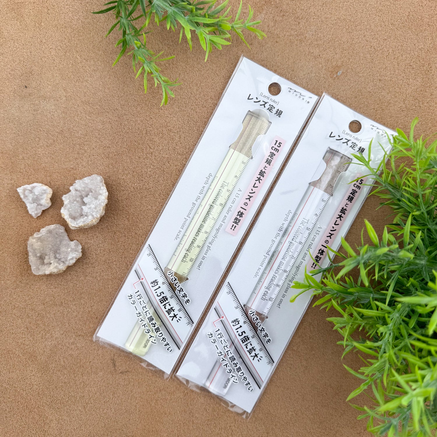 Its compact design allows it to be used not only for drawing lines and measuring, but also as a convenient tool for reading small text more easily than with reading glasses when needed. It includes color guidelines for easy reading along the lines, and the text is magnified by approximately 1.5 times.