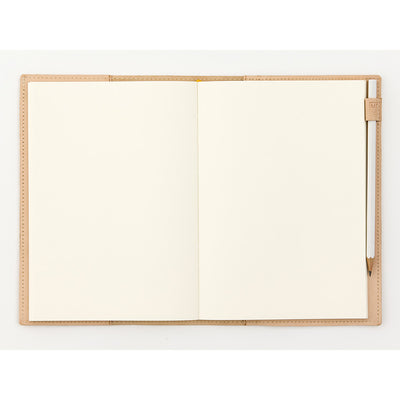 The leather is undyed for a simple look, and the unique character of each piece shines through on the inside of the cover.