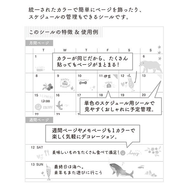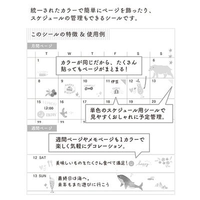 It is a sticker that can be pasted and peeled off to decorate the margins and dates of notebooks in a fun way. You can put them on top of each other in a line to decorate the margins and headings of the memo page.