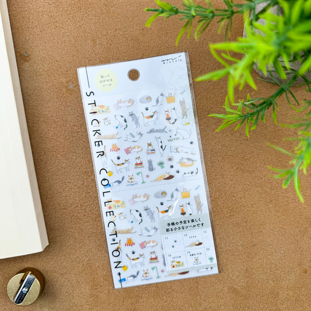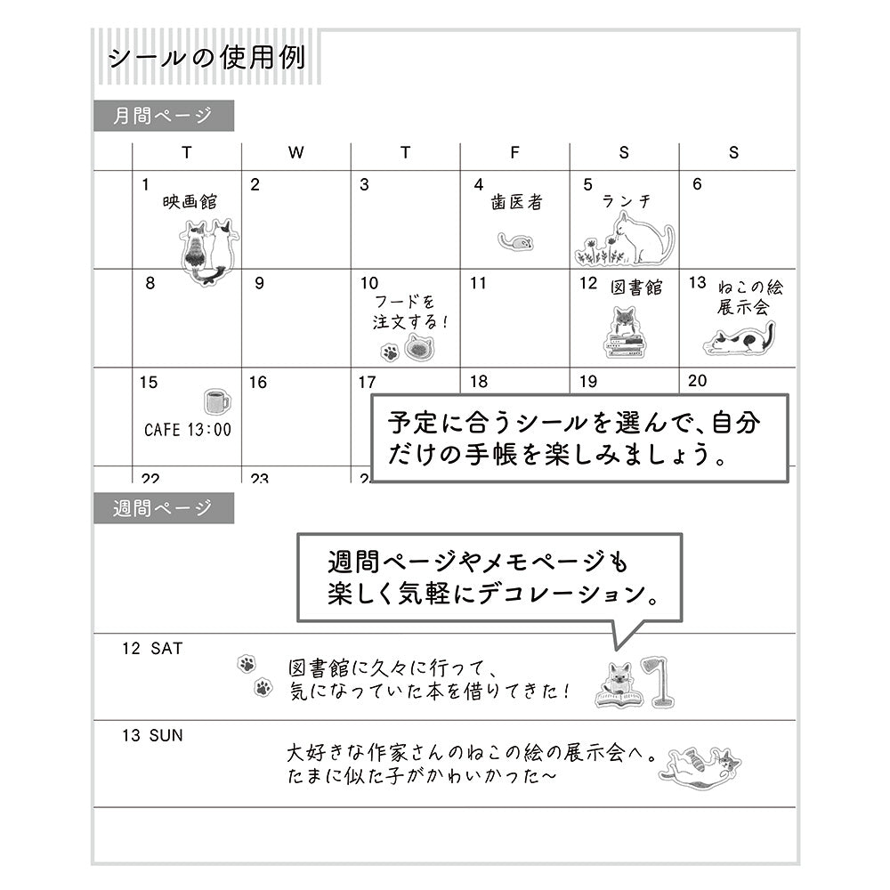 This PET sticker is a fun way to decorate your diary, planner and notebook. You can customize your notebook by highlighting dates and headings, or by adding color to the ruled lines and margins. The perforated design allows the stickers to be divided into two parts, so you can carry only the amount you need. The stick-on/peel-off type makes it easy to enjoy decorating the notebook. Small in size and easy to use on the monthly block pages, this collection features cute motifs with various cat expressions and movements.