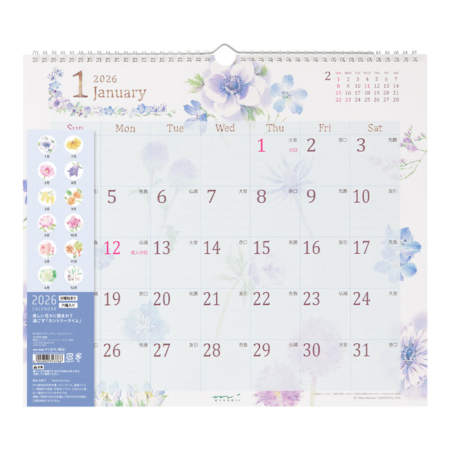 Midori Wall-Hanging Calendar - L - Country Time Flower - 2026 is backordered and will ship as soon as it is back in stock.